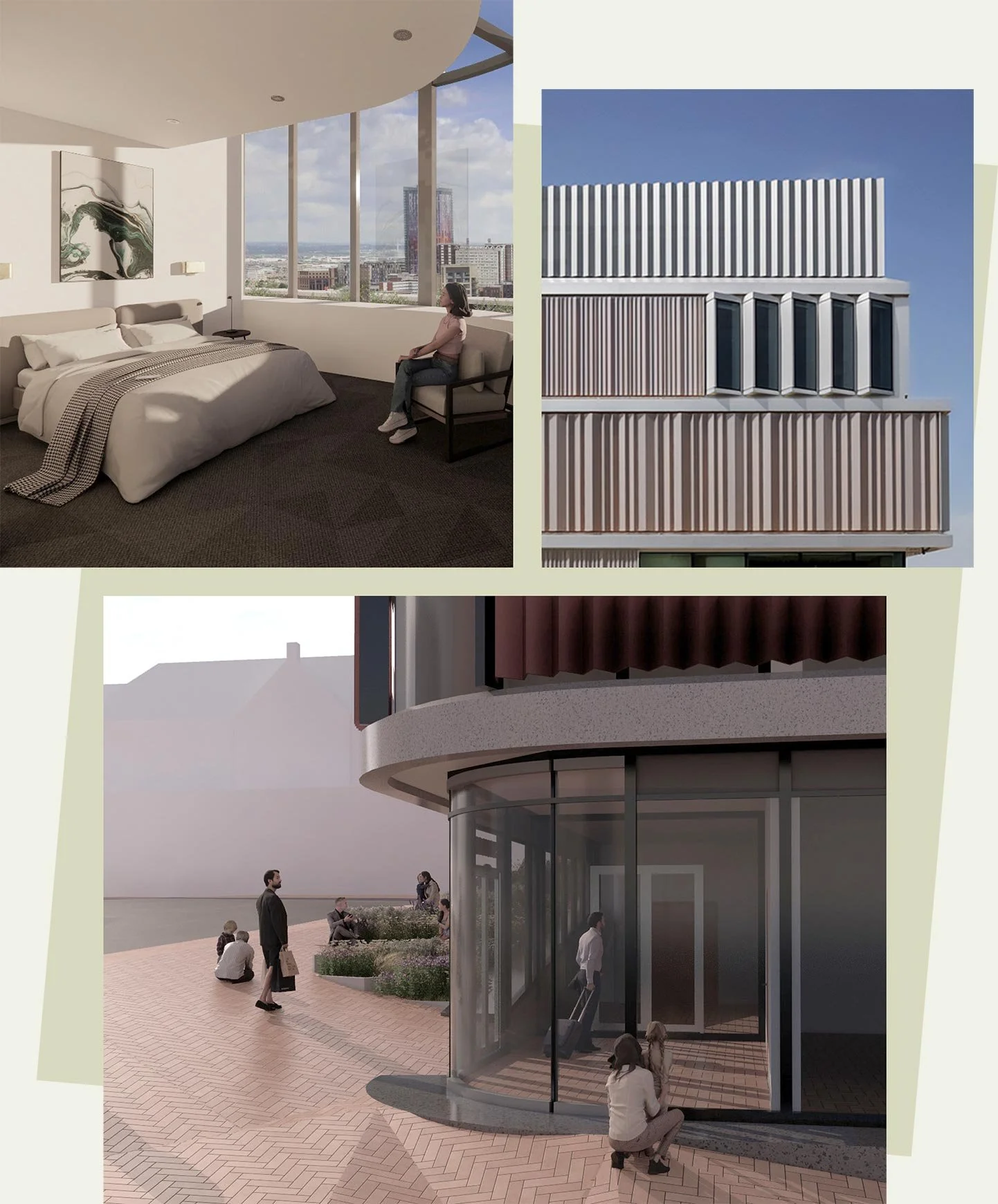 The hotel’s main entrance will be off of Station Approach. The proposed building line has been realigned to match the neighbouring plot to the west, providing additional space to the footpath along Whytecliffe Road South. The proposed building has been set further back from Station Approach compared to the existing structures, allowing for additional space to be returned to the public realm and enhanced for public use.